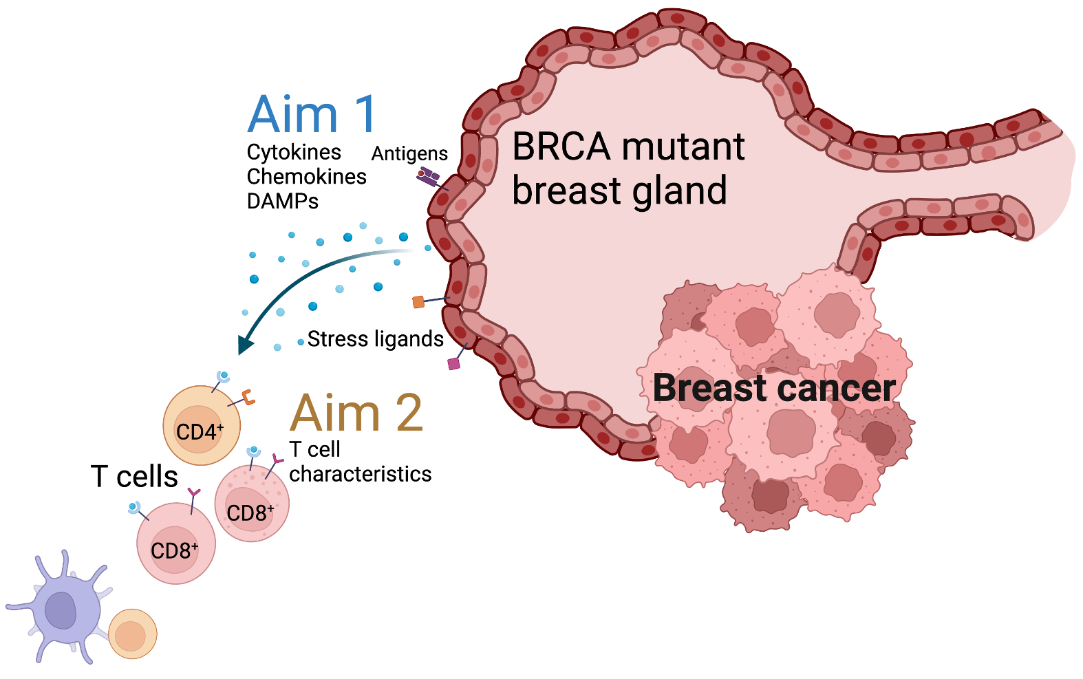 - Aim 1. Determine the immunogenic signals that drive T cell response in BRCA mutant breast glands (UG3).